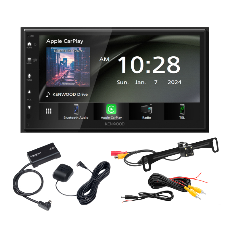 DMX4710S 1-DIN 6.8" Digital Multimedia Reciever with Wired Apple CarPlay Ready, Wired Android Auto Ready, SiriusXM Ready, Wired iPhone & Android USB Mirroring + Rear Camera Input, iDatalink Maestro Ready and Full HD Video File Format Playback + ELPC40B Rear-View License Plate Mount Camera with Weatherproof, High-Resolution Color, and Wide-Angle View + SXV300V1 Satellite Radio Tuner
