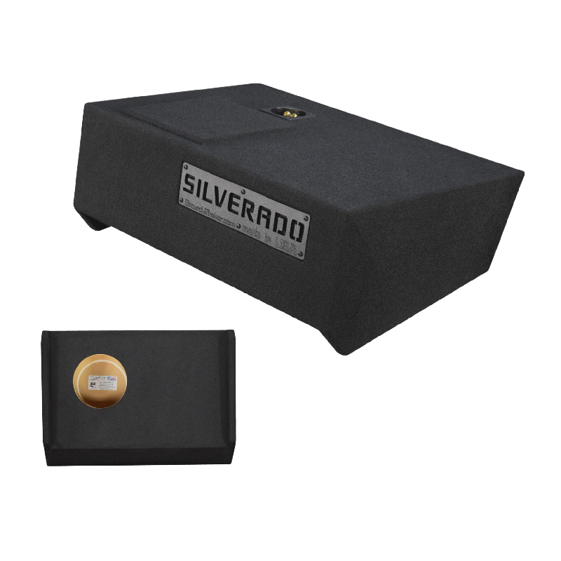 Black 8" Single Sealed Enclosure for 2019-2026 Chevy Silverado Double & Crew-Cab (under rear seat)