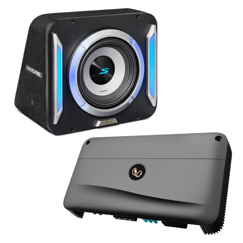 Reference 10001A Reference Series 1000W RMS x 1 at 2-Ohms, Class-D Mono Subwoofer Car Amplifier + S2-SB8 Prismalink S2-Series S2-SB8 8" 900W Peak Power Handling 2 Ohm, Car Subwoofer in Sealed Subwoofer Enclosure with RGB Lighting