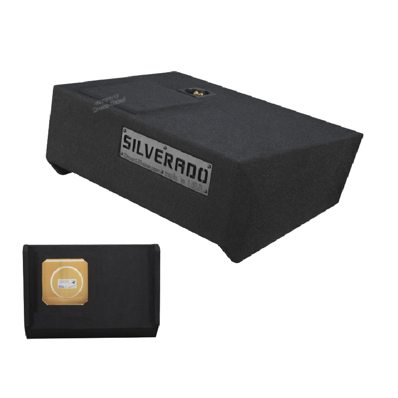 Black 8" Solobaric Single Sealed Enclosure for 2019-2026 Chevy Silverado Double Crew-Cab (under rear seat)