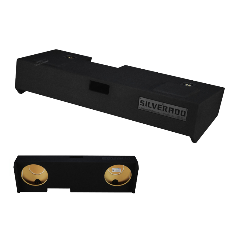 Black 12" Dual Ported Enclosure for 2019-2026 Chevy Silverado Double Crew-Cab (under rear seat)