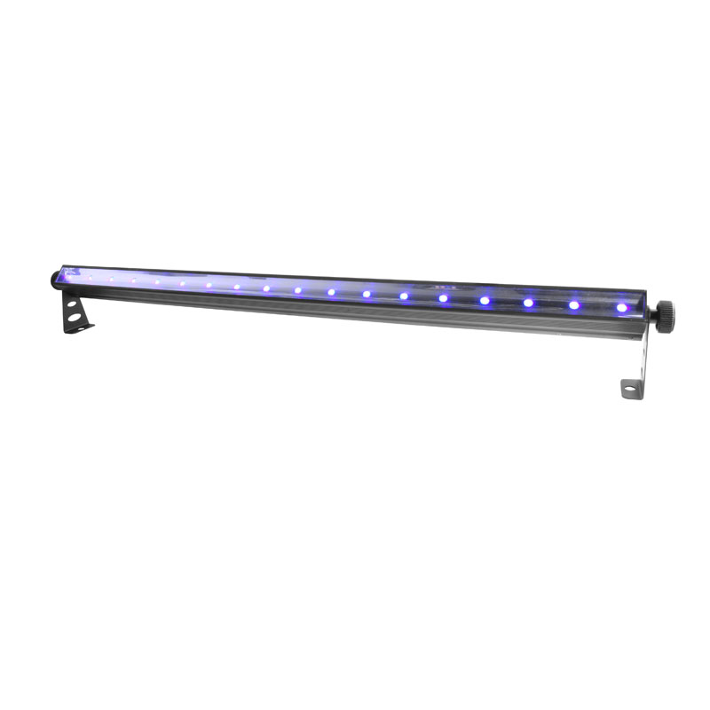 SlimSTRIP™ UV-18 IRC is a high-output ultraviolet wash. This eco-friendly replacement for standard 48-inch fluorescent tubes can be controlled via DMX, or convenient wireless non-DMX control using the optional IRC-6 remote control. To create large displays, attach multiple units together with the optional CBB-6. It is ready to use right out of the box and transports easily in the CHS-60 VIP Gear Bag.